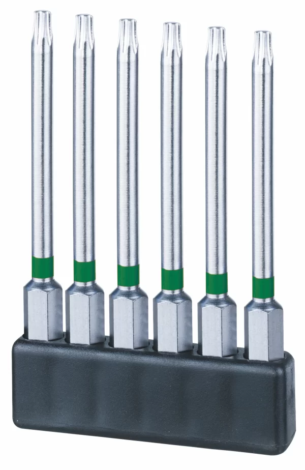 When compared to TX bits, 75mm IP bits may be differentiated only by their colour stripes since they are completely coloured as part of a colour management scheme that helps prevent torque application errors. Between the tool and the screw, there is more surface area in contact. On both bits and adapters, you can see the colour identification. Commonly, the TORX profile is used in contemporary, high-performance industrial items. Thanks to the ergonomic grips roomy thumb and index finger rest zones, it is simple to transfer strong torques. Rust and corrosion are avoided by these components.